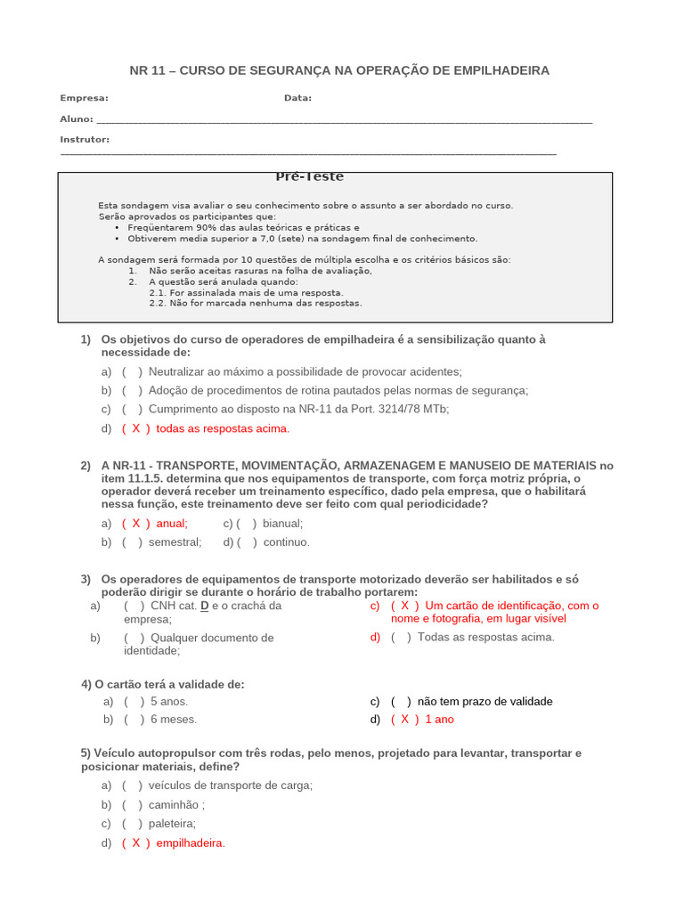 1) Os objetivos do curso de operadores de empilhadeira é a sensibilização quanto à
