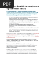 caracterizado por desatenção, hiperatividade e impulsividade. Para o diagnóstico, os comportamentos e