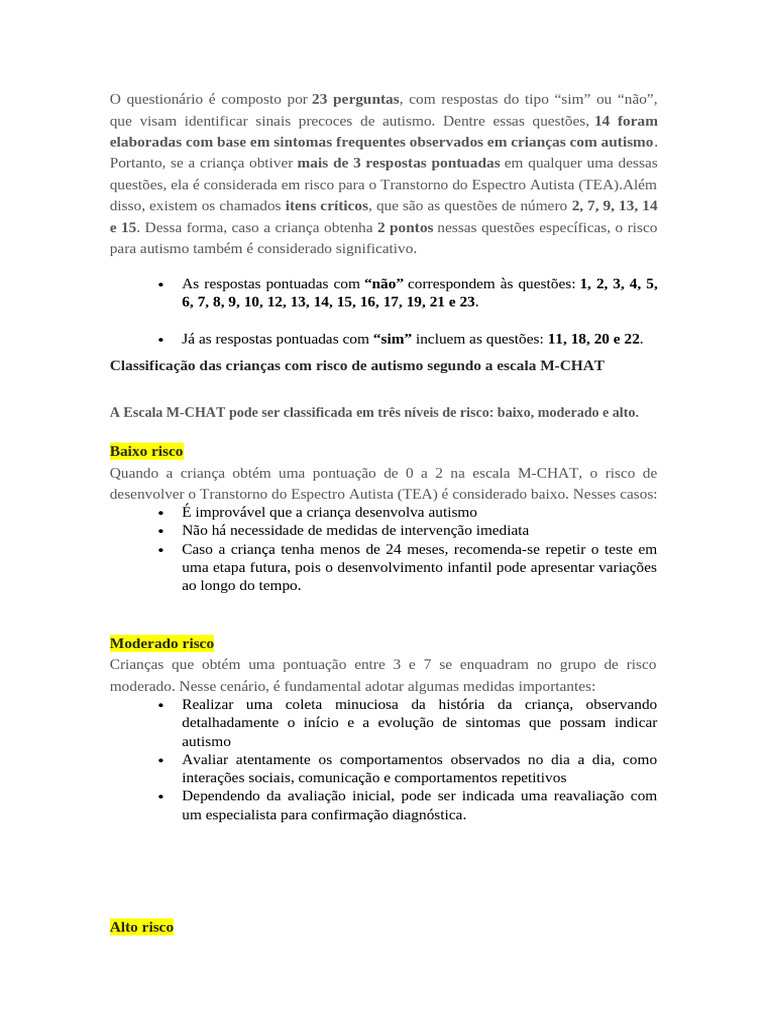 Portanto, se a criança obtiver mais de 3 respostas pontuadas em qualquer uma dessas