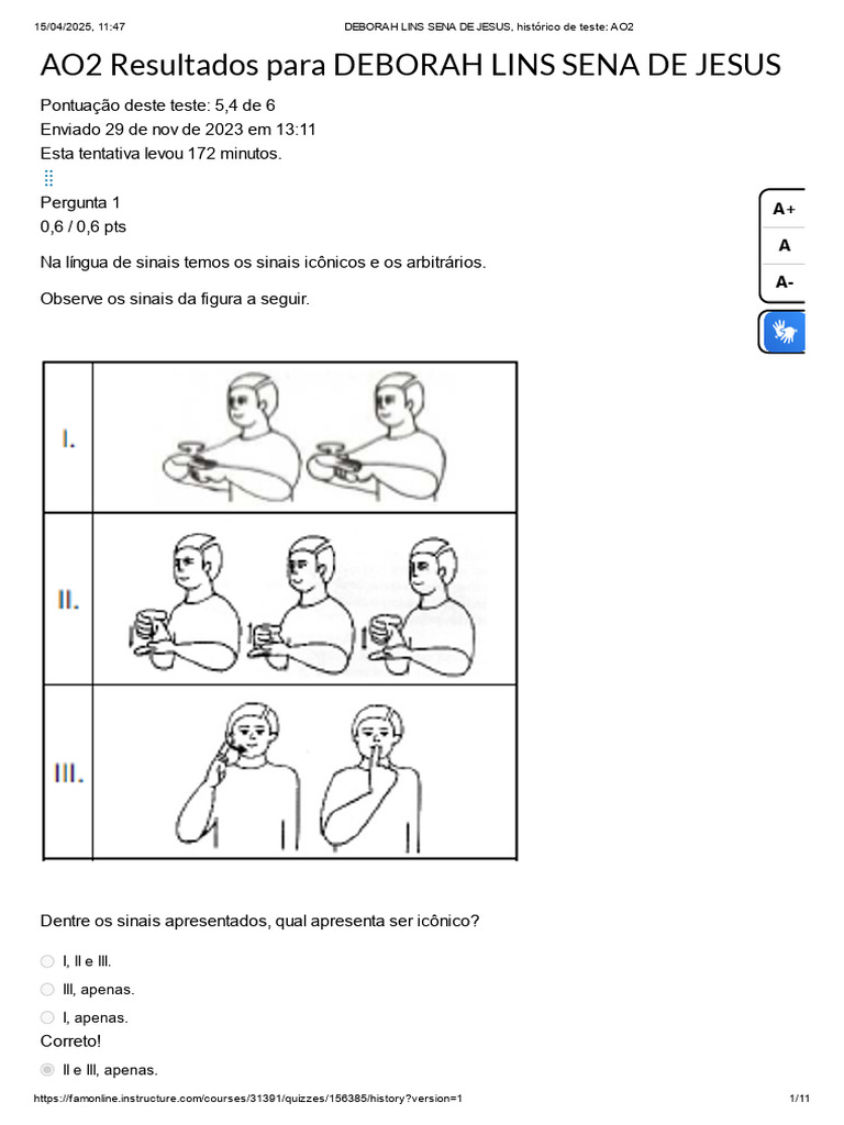 Resposta correta o sinal I é referente a “conversar”, não sendo um sinal icônico. O sinal II é
