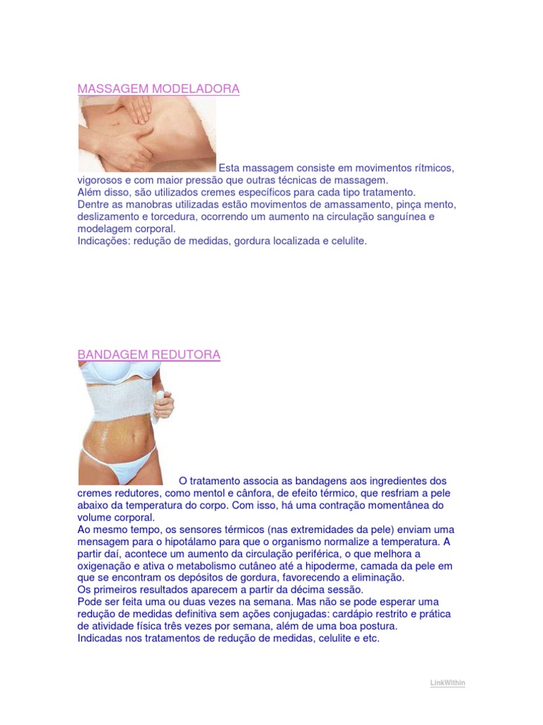 O tratamento associa as bandagens aos ingredientes dos cremes redutores, como mentol e cânfora, de efeito térmico, que resfriam a pele abaixo da temperatura do corpo. Com isso, há uma contração momentânea do volume corporal. Ao mesmo tempo, os sensores térmicos (nas extremidades da pele) enviam uma mensagem para o hipotálamo para que o organismo normalize a temperatura. A partir daí, acontece um aumento da circulação periférica, o que melhora a oxigenação e ativa o metabolismo cutâneo até a hipoderme, camada da pele em que se encontram os depósitos de gordura, favorecendo a eliminação. Os primeiros resultados aparecem a partir da décima sessão. Pode ser feita uma ou duas vezes na semana. Mas não se pode esperar uma redução de medidas definitiva sem ações conjugadas: cardápio restrito e prática de atividade física três vezes por semana, além de uma boa postura. Indicadas nos tratamentos de redução de medidas, celulite e etc.