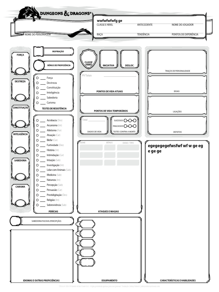 NOME DO PERSONAGEM RAÇA TENDÊNCIA PONTOS DE EXPERIÊNCIA