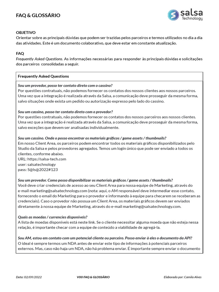 Data: 02/09/2022 V00 FAQ & GLOSSÁRIO Elaborado por: Camila Alves
