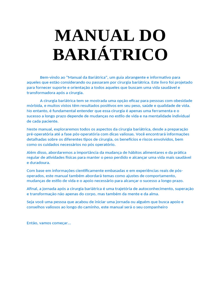 Bem-vindo ao "Manual da Bariátrica", um guia abrangente e informativo para