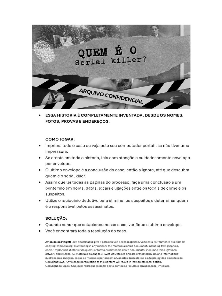 0 notas 0% acharam este documento útil (0 voto) 4K visualizações 28 páginas Caso Serial Killer