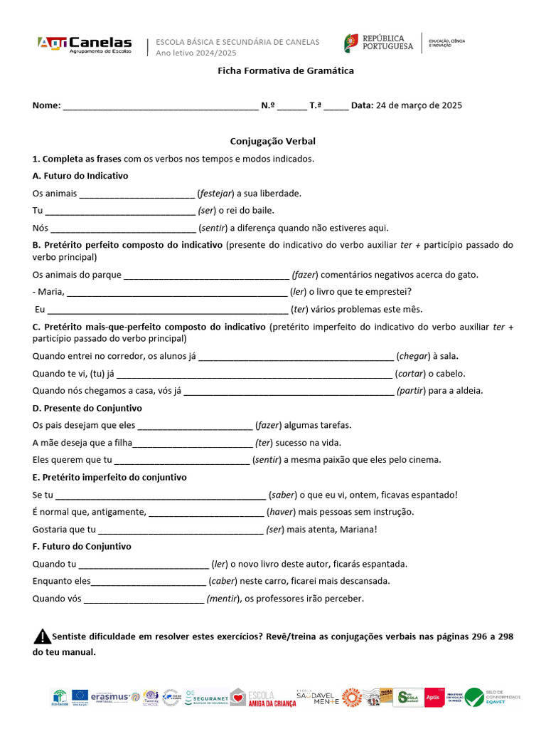 Sentiste dificuldade em resolver estes exercícios? Revê/treina as conjugações verbais nas páginas 296 a 298