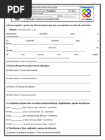 2. Completa a tabela, reescrevendo os enunciados no discurso direto, ou indireto, conforme os casos.