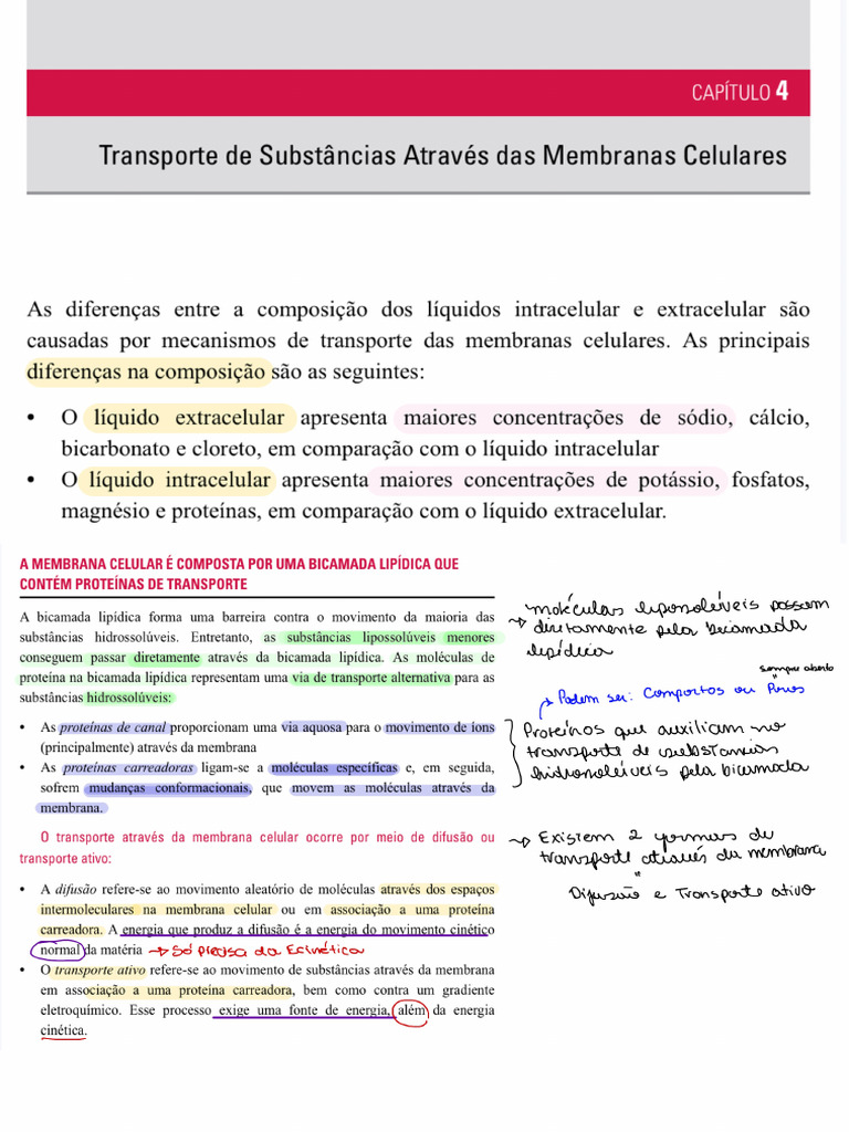 Transporte de Substâncias Através da s Membranas Celulares