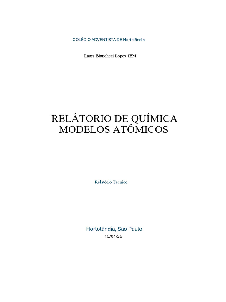 entendimento atual sobre a constituição dos átomos. Este relatório apresenta uma revisão dos