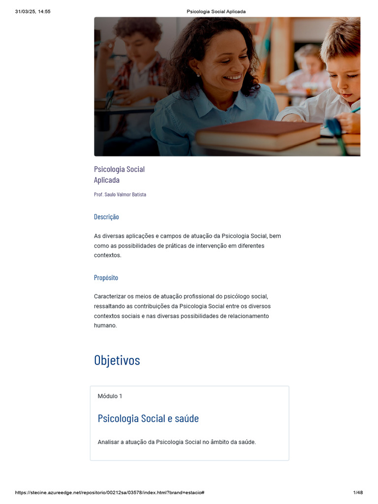 31/03/25, 14:55 Psicologia Social Aplicada