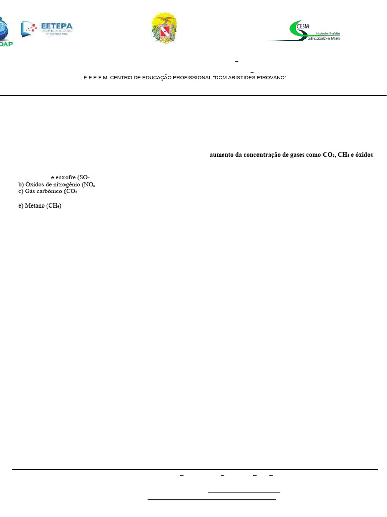 e) Metano (CH₄) d) Reflorestamento e preservação de áreas verdes.