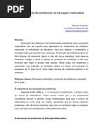 problema matemático não se baseia apenas em decorar regras, algarismos e conceitos,