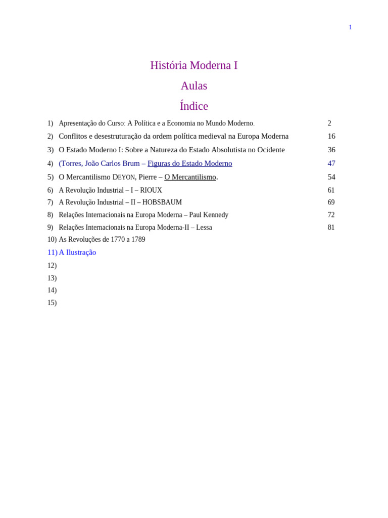 No Curso de Moderna I - foram vistos aspectos do mundo europeu