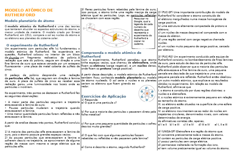 RUTHERFORD elétrica igual às partículas. Logo, as partículas refletidas Rutherford foi considerar o átomo constituído de: