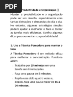 Trabalhe por 25 minutos focado, depois descanse 5. Após 4 ciclos, descanse 15 a 30 minutos.