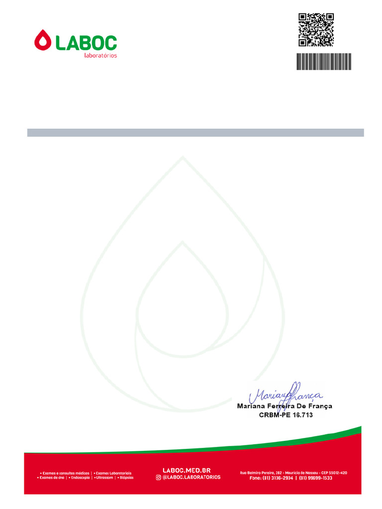 OBS : LEVE ESTE EXAME AO MÉDICO(A). PARA UMA AVALIAÇÃO CORRETA DESTE RESULTADO OU SOLICI-