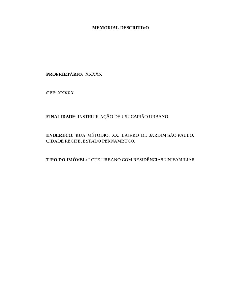 FINALIDADE: INSTRUIR AÇÃO DE USUCAPIÃO URBANO