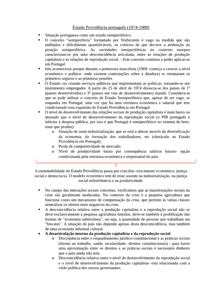 que tiveram lugar ao longo do período do Estado-Providência, que originaram a