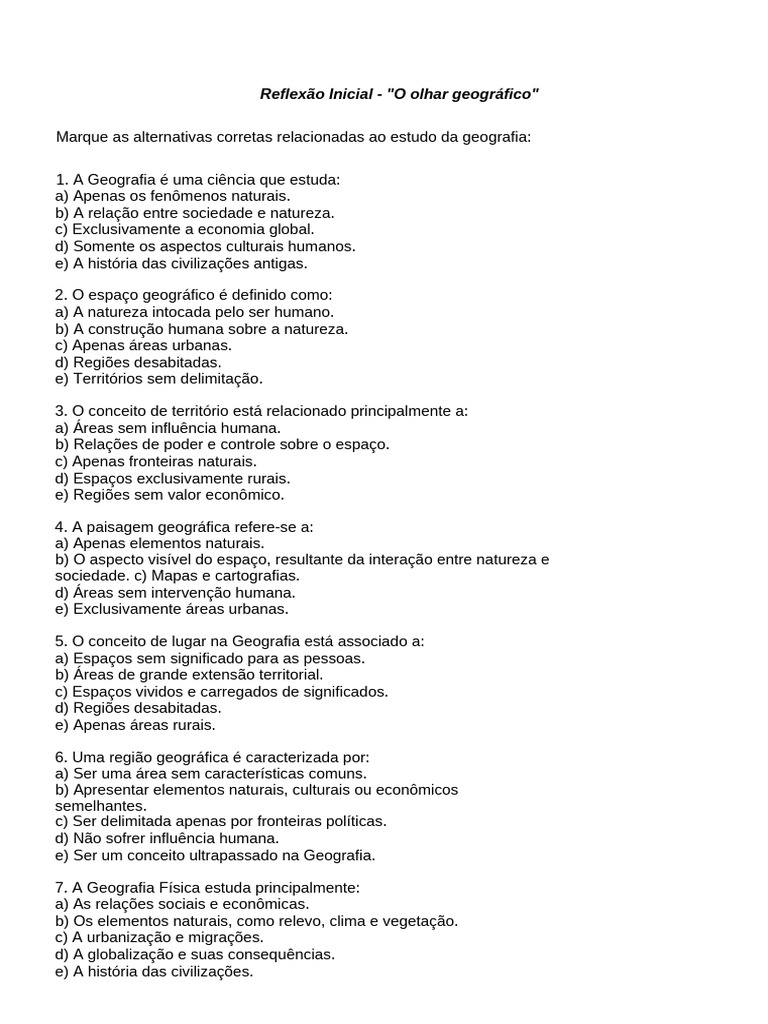Marque as alternativas corretas relacionadas ao estudo da geografia: