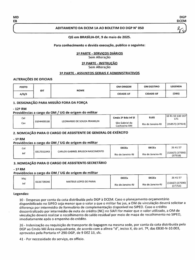 - SPe Fortaleza - CE. Em solução ao DIEx nº 4940-ARH2/ARH/DECEx, de 30 de abril de 2025.