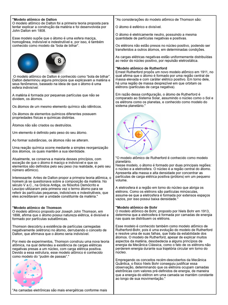O modelo atômico de Dalton é conhecido como “bola de bilhar”. qual afirma que o átomo é formado por uma região central de