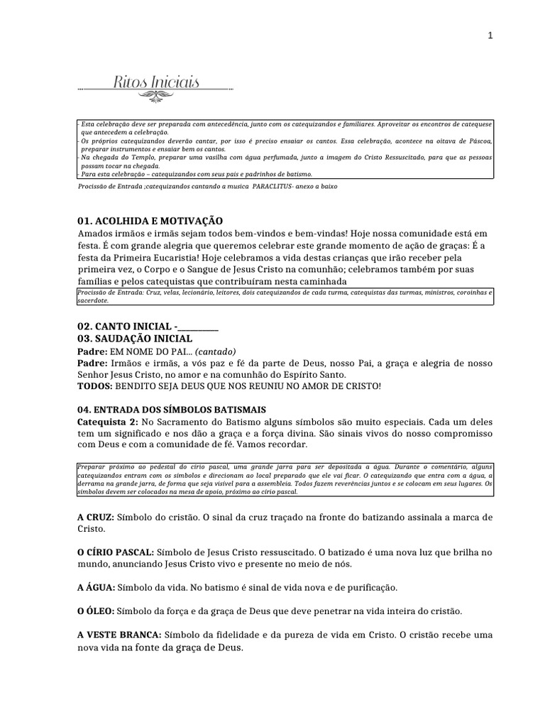 - Os próprios catequizandos deverão cantar, por isso é preciso ensaiar os cantos. Essa celebração, acontece na oitava de Páscoa,