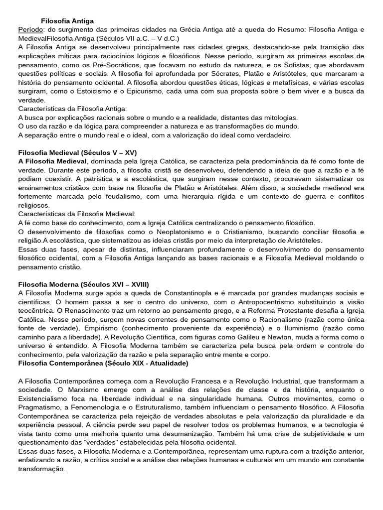 Período: do surgimento das primeiras cidades na Grécia Antiga até a queda do Resumo: Filosofia Antiga e