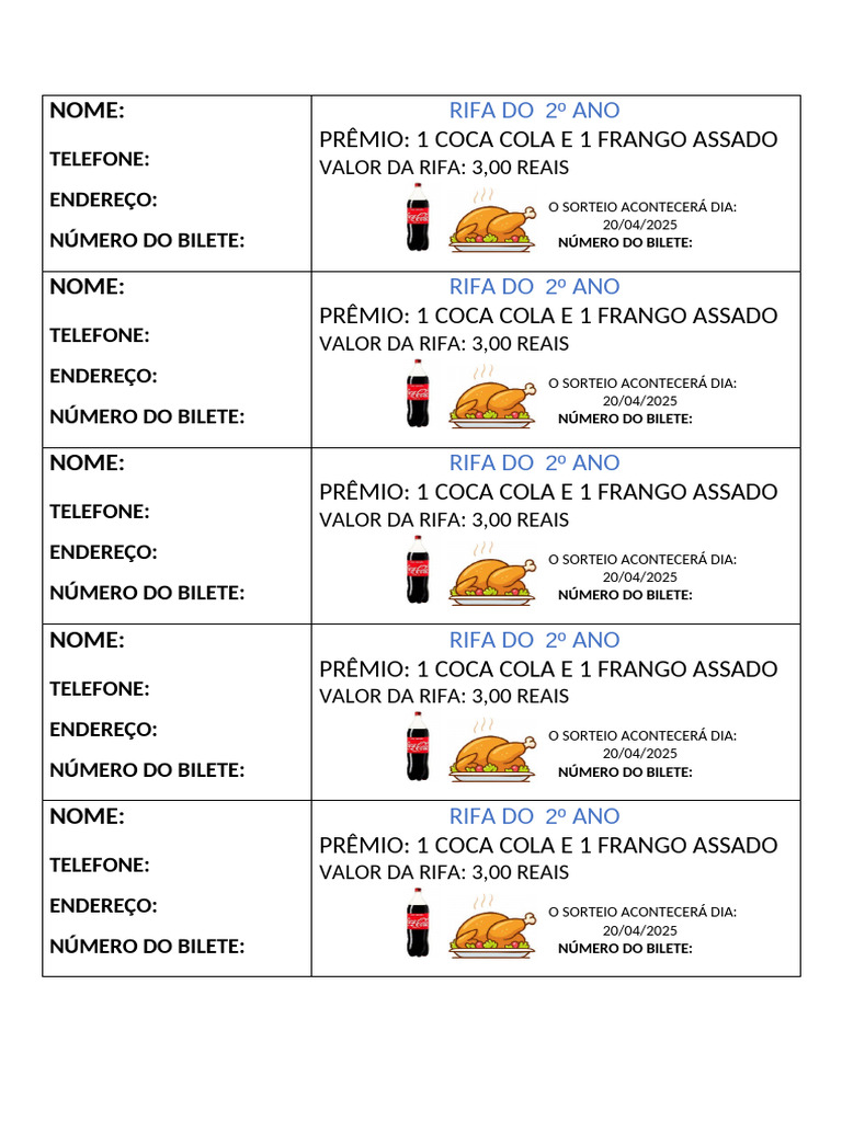 PRÊMIO: 1 COCA COLA E 1 FRANGO ASSADO