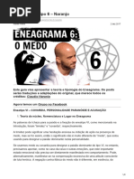 4 - SINTO QUE... A. Estou sempre dizendo: "eu tenho que...", "eu deveria..." B. Com jeitinho, consigo tudo o que quero. C. Tenho grandes dificuldades para ficar quieto, "meditando! D. No posso ser feliz em um mundo to cego e insensvel! E. Gosto de ser reconhecido pelos meus conhecimentos especializados. F. Tomar decises algo que no gosto e tento evitar sempre que possvel. G. Considero-me uma pessoa muito criativa e audaciosa. Planejar me d prazer, executar nem sempre. H. Abrao com muita determinao as causas que considero justas e verdadeiras. I. Estou sempre disposto a ajudar os outros. 5 - PERCEBO QUE... A. Se no pode ser bem feito, melhor no fazer! B. Fico zangado quando as pessoas das quais espero reconhecimento me ignoram ou me fazem sentir em segundo lugar! C. Quando fracasso, recupero-me rapidamente. D. Ningum compreende meus sentimentos. E. Meu quarto o nico local da casa no qual posso ficar mais livre, sem ter que falar com ningum. F. No aceito ser controlado ou obrigado a fazer algo. G. Tento manter sempre o alto astral! H. Preciso controlar tudo, mesmo percebendo quanto isso me faz mal no sentido de gastar muita energia. I. E fcil me adaptar a qualquer tipo de pessoa. 6 - SEI QUE... A. Desde muito cedo me foi incutido um senso de responsabilidade, no sentido de que deveria dar o exemplo. B. Ajudar as pessoas maravilhoso. C. difcil ter tempo para minhas prprias necessidades. D. Melancolia, esse meu estado permanente! E. Tenho dificuldades para viver relacionamentos amorosos. F. Sentir-me seguro essencial. G. Minhas grandes paixes so as idias, os novos conhecimentos e desafios. H. Nunca estou satisfeito, sempre desejo conquistar mais e mais! I. Costumo adiar muitas coisas importantes para mim. 7 - NA VERDADE A. Sempre fao tudo bem feito! B. Adoro aplausos! A vida um espetculo... C. Modestamente, sou o melhor na minha rea. D. Me sinto diferente aos demais, sinto o que ningum capaz de sentir. E. Sou capaz de ter momentos privados de lazer; sozinho melhor! F.No gosto nada de falar de mim. Alm de no gostar, no tenho a menor vontade. G. Sou um pouco (ou muito) narcisista, simplesmente me adoro!. H. Sinto que posso conquistar o mundo! I. Procuro me ajustar ao mundo, dividindo-me entre todos os que me rodeiam, facilitando-lhes ou resolvendo a vida.