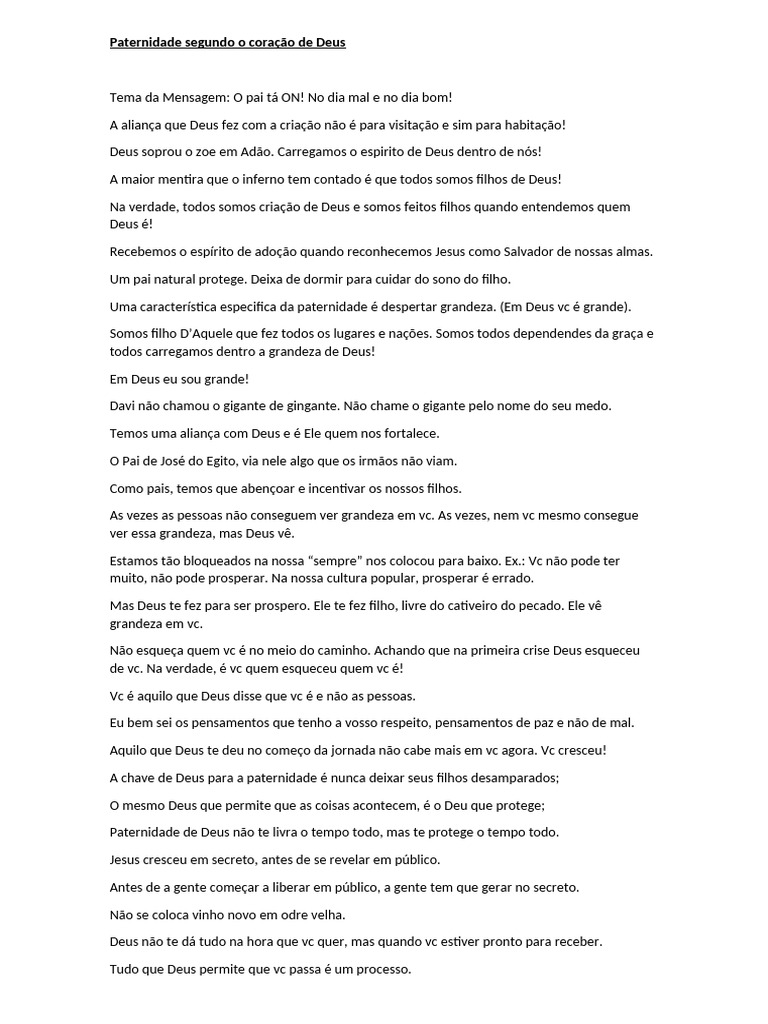 Tema da Mensagem: O pai tá ON! No dia mal e no dia bom!