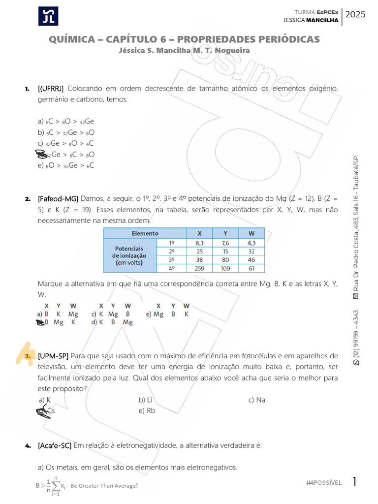 9. [UFRGS-RS] Assinale a alternativa que indica a ordem crescente dos raios atômicos. n (12) 99199 – 4343