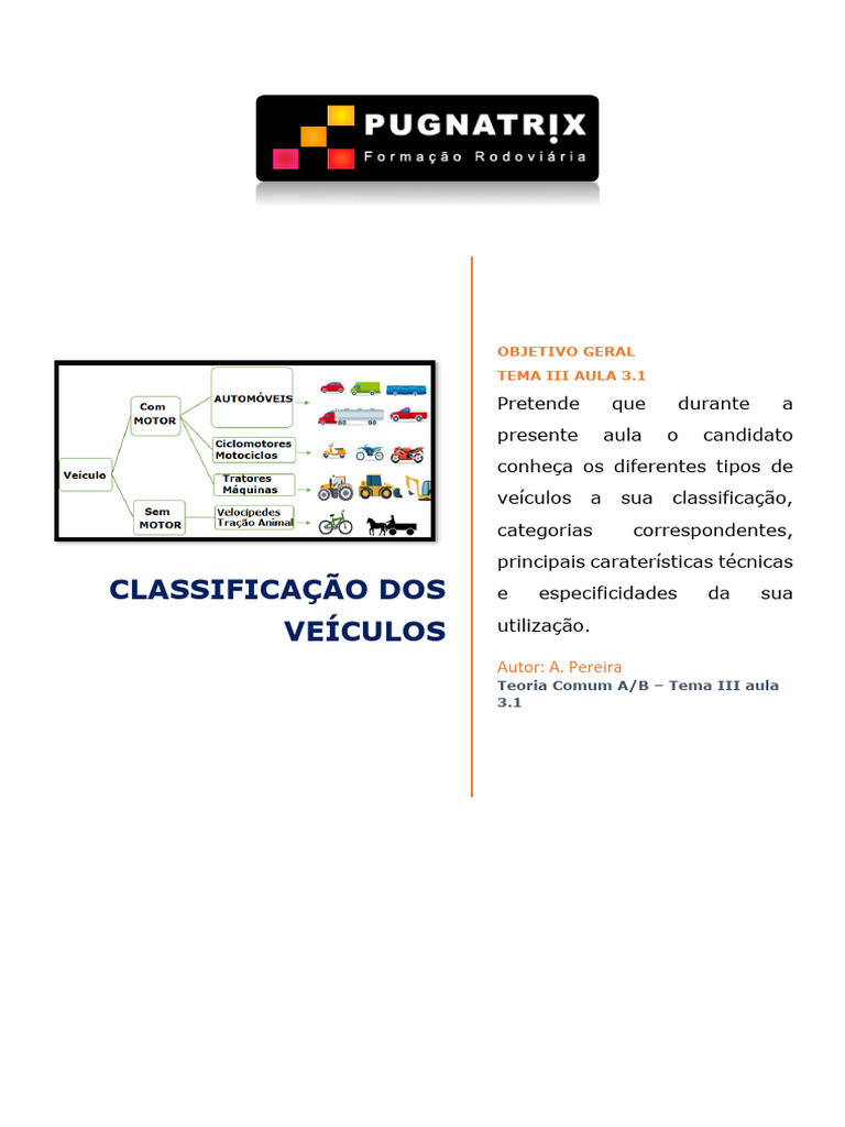 veículos a sua classificação,