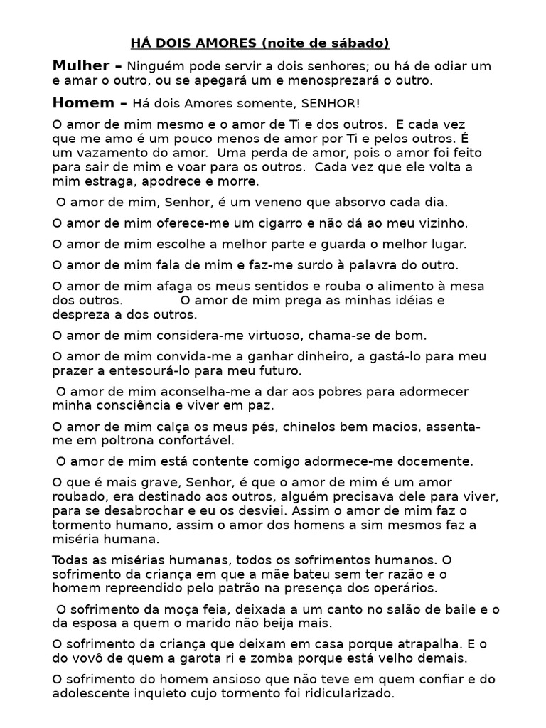 O amor de mim mesmo e o amor de Ti e dos outros. E cada vez