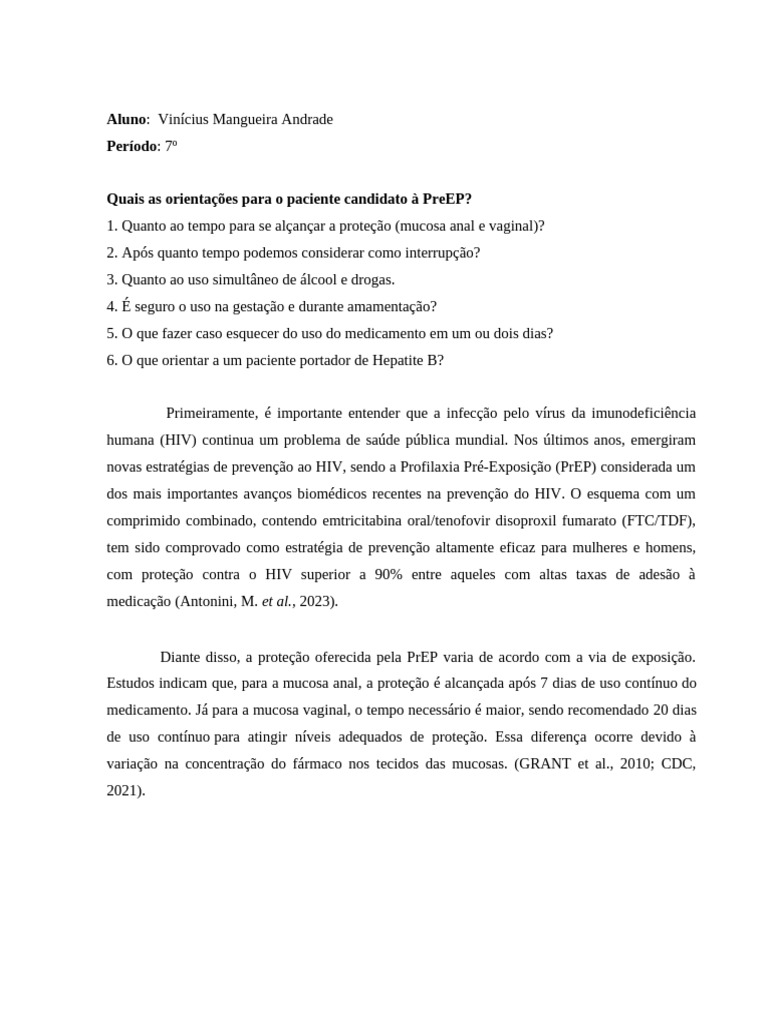 antiviral específico para hepatite B após a suspensão da PrEP (WHO, 2020; CDC, 2021).
