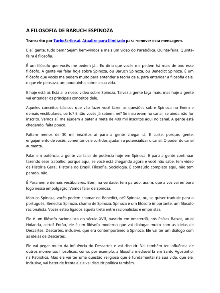 Certo? Bom, espero que vocês tenham entendido, Espinosa. Ele é um pouco complexo, não