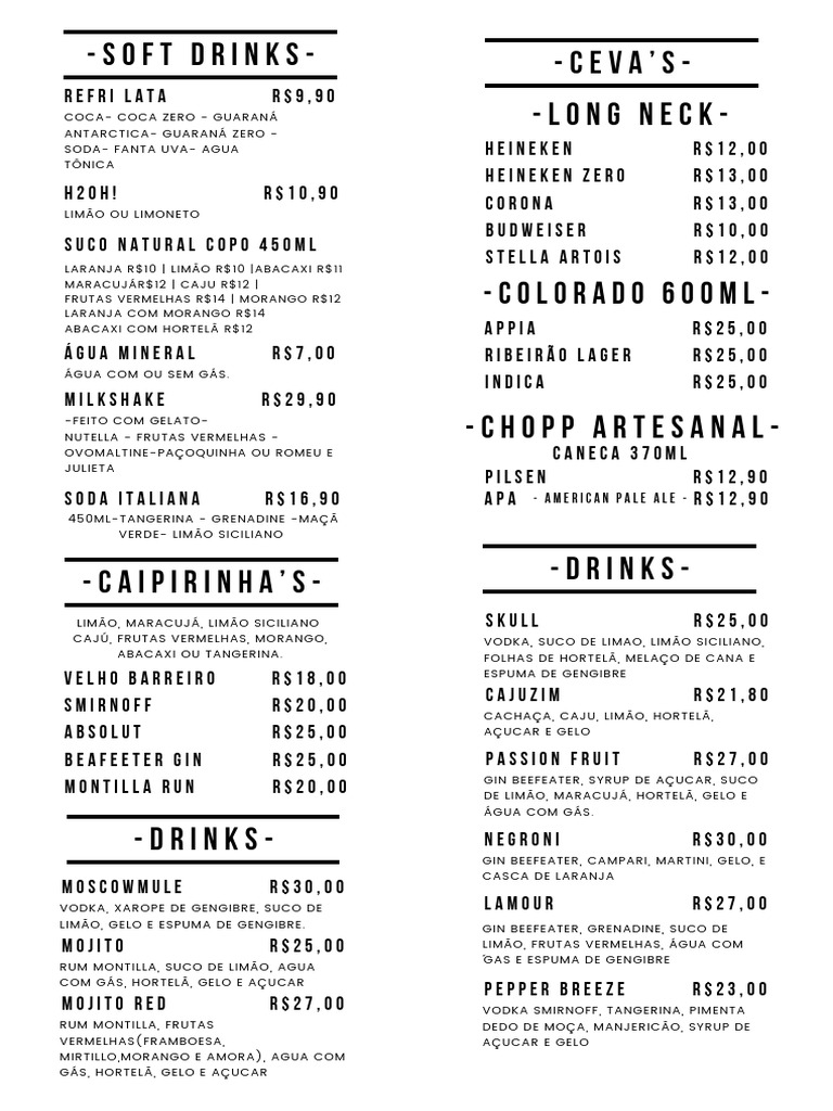 MOJITO r$25,00 LIMÃO, FRUTAS VERMELHAS, ÁGUA COM