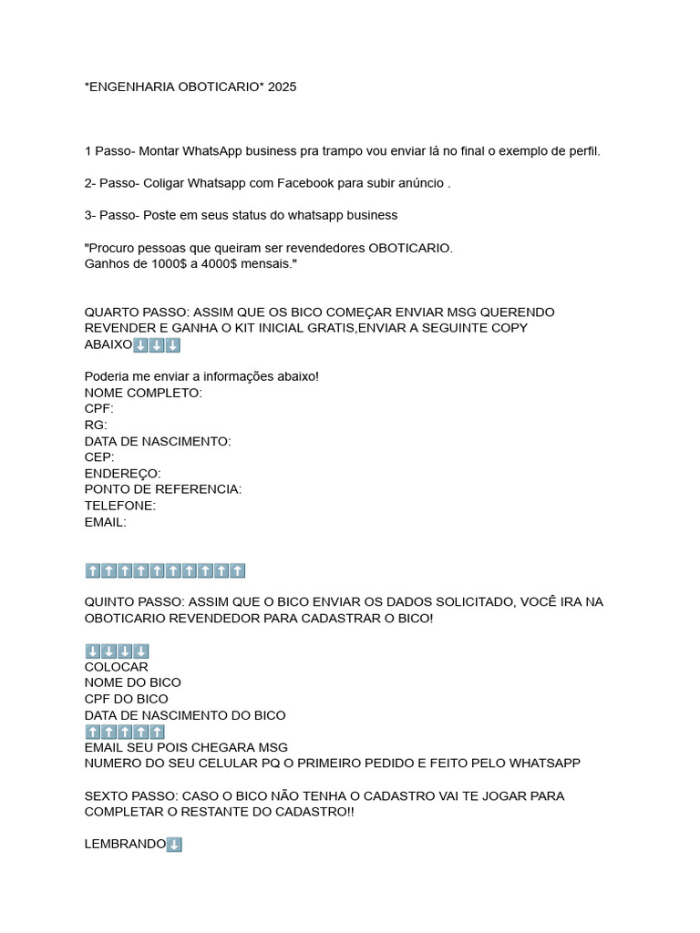 "Procuro pessoas que queiram ser revendedores OBOTICARIO.