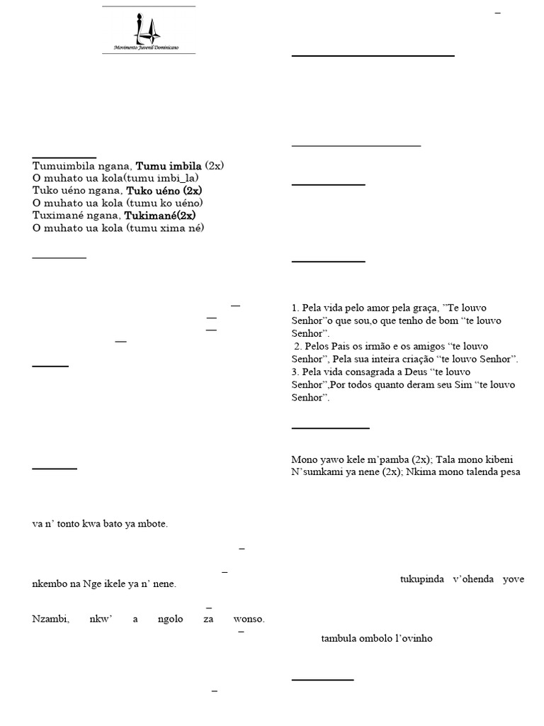Movimento Juvenil Dominicano-Angola Coral: Ó mbimbi yé (4x) mbimbi ikola