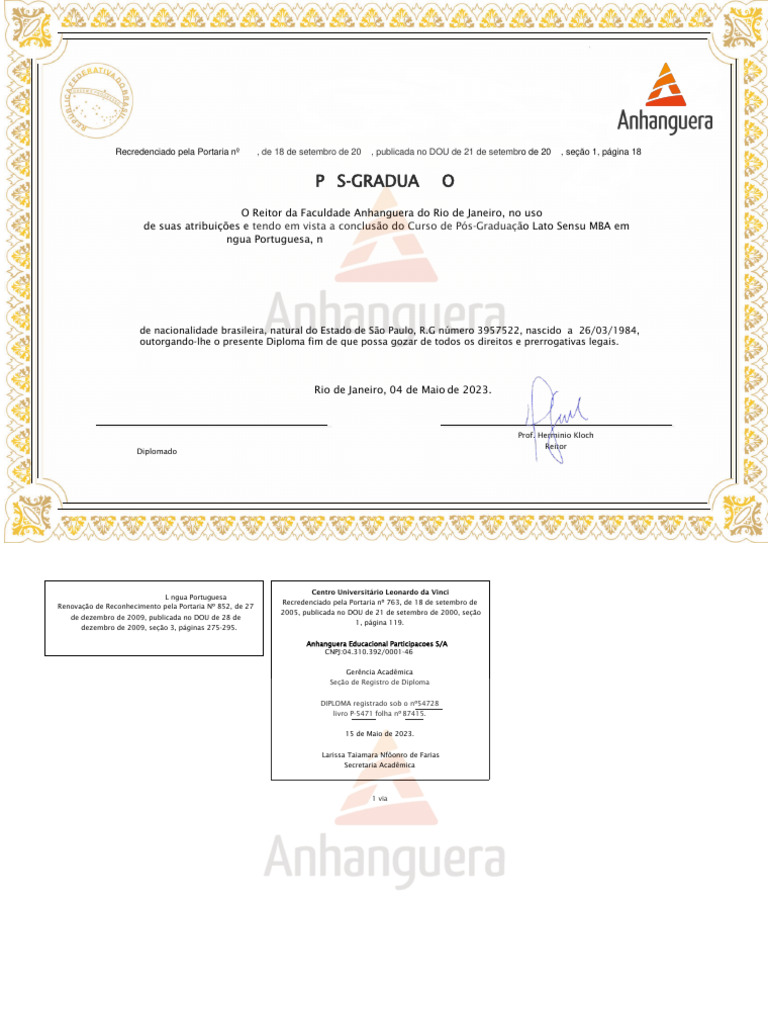 outorgando-lhe o presente Diploma fim de que possa gozar de todos os direitos e prerrogativas legais.