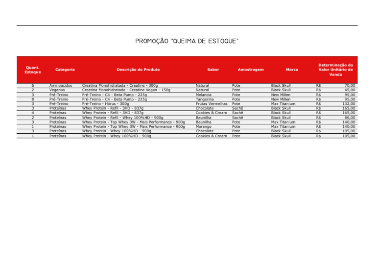 Categoria Descrição do Produto Sabor Amostragem Marca Valor Unitário de