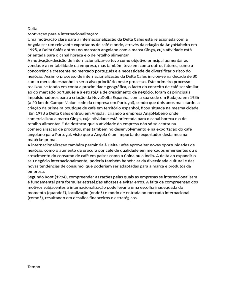 Uma motivação clara para a internacionalização da Delta Cafés está relacionada com a