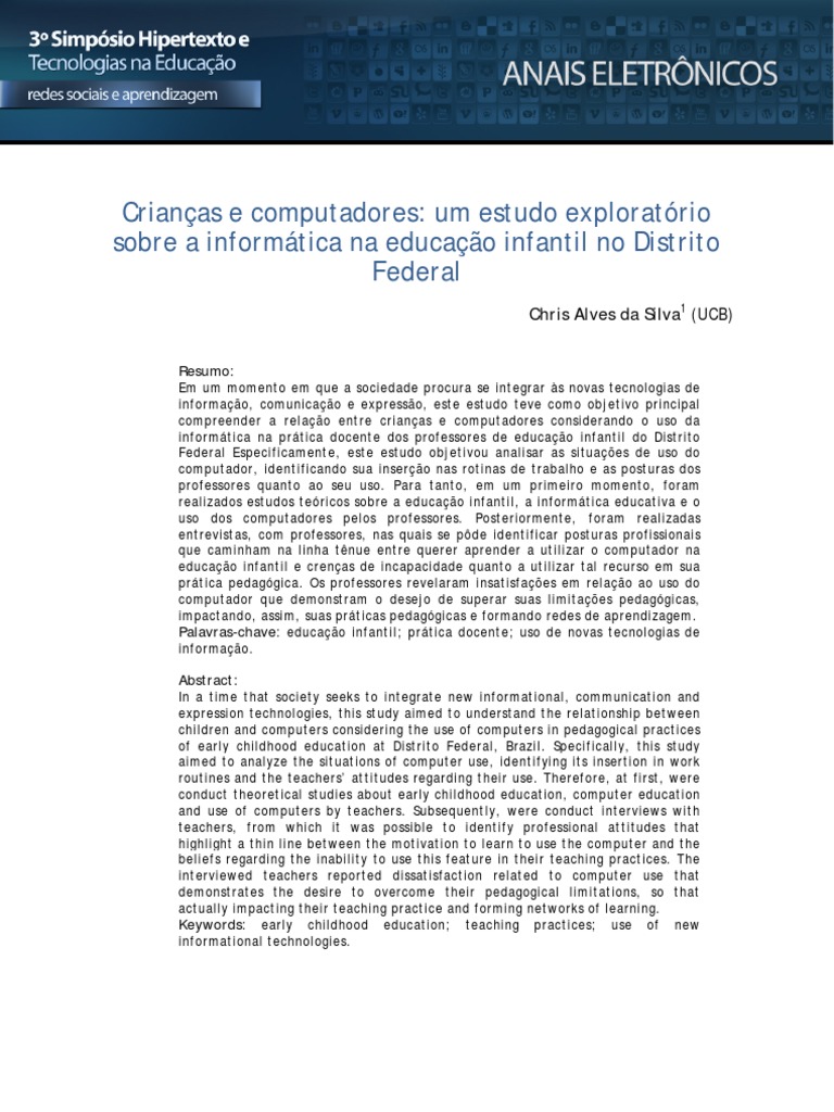 Crianças e computadores: desvelando um cenário no âmbito da educação infantil no Distrito Federal