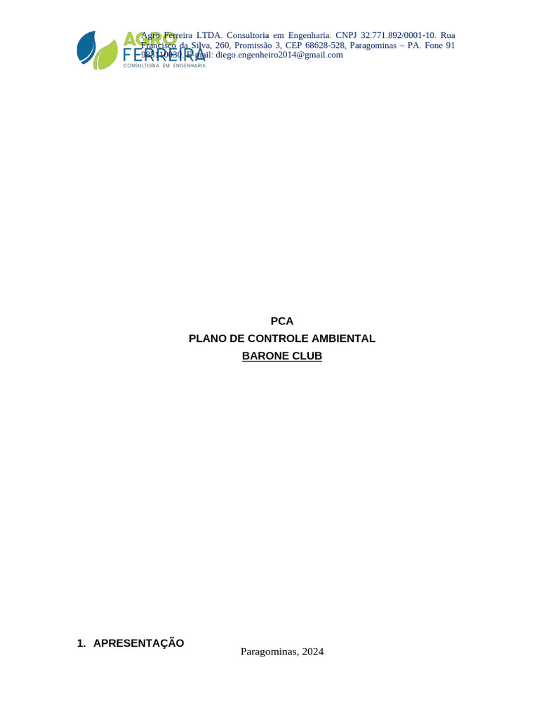 Este documento constitui o Plano de Controle Ambiental - PCA, solicitado pela