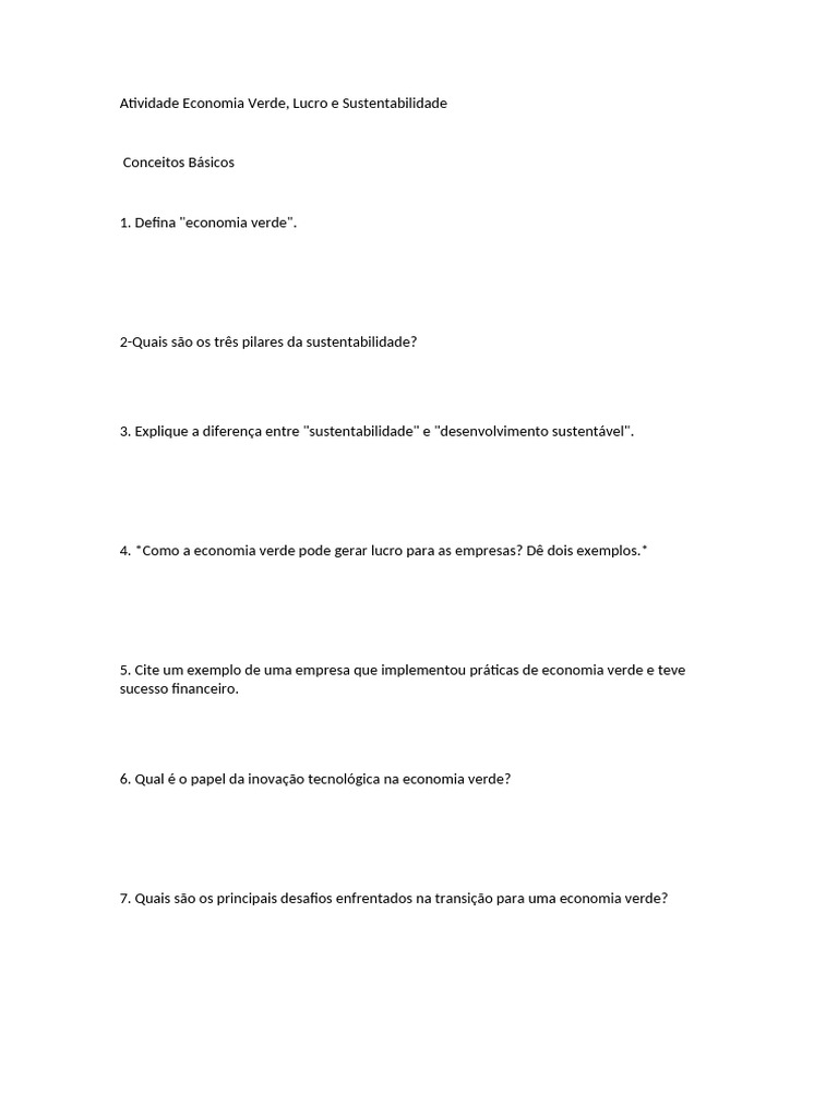 Atividade Economia Verde, Lucro e Sustentabilidade