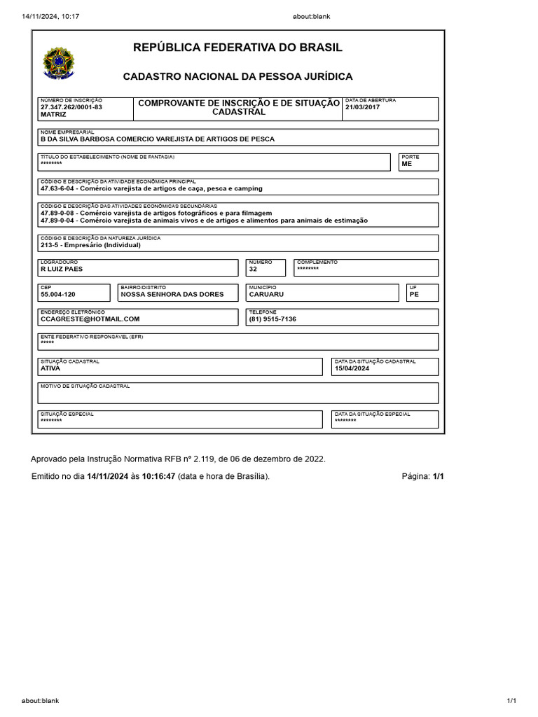 Emitido no dia 14/11/2024 às [Link] (data e hora de Brasília). Página: 1/1