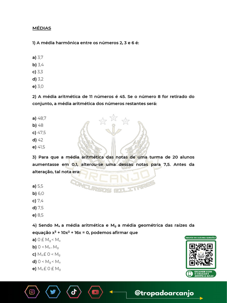 4) Sendo Ma a média aritmética e Mg a média geométrica das raízes da