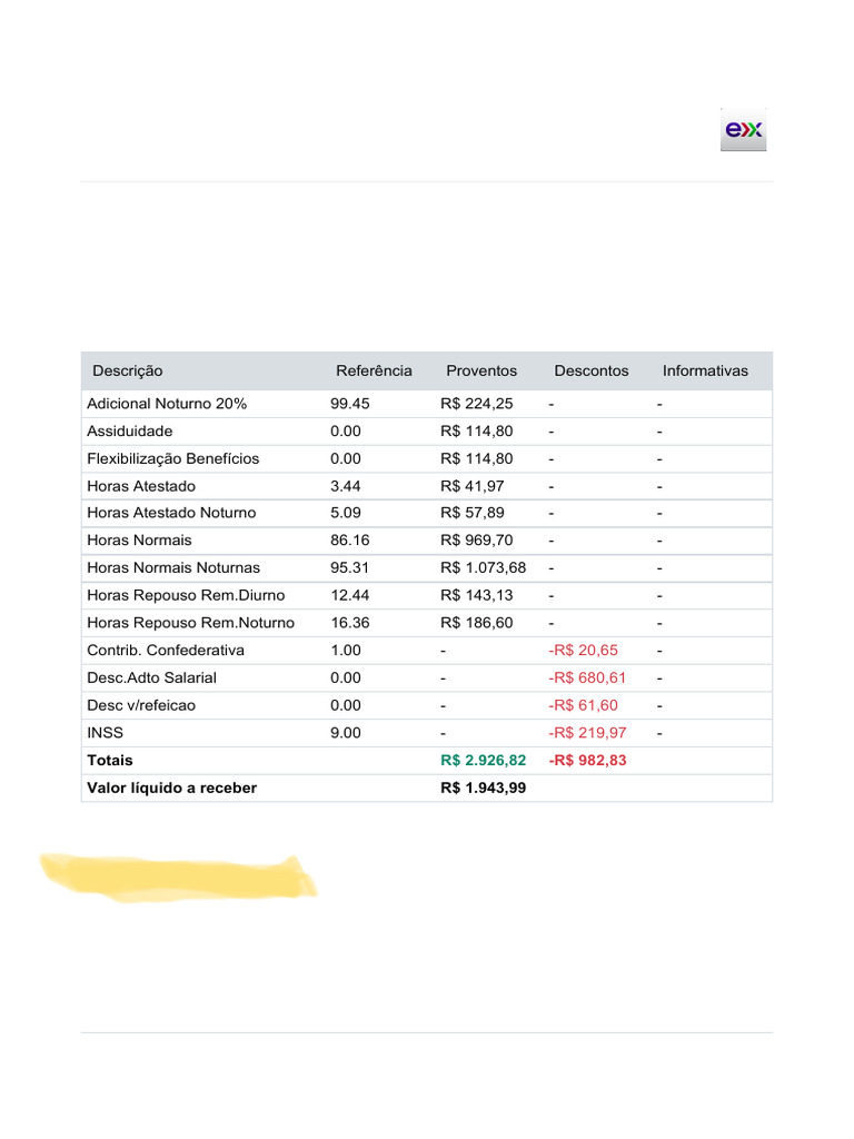 Valor líquido a receber R$ 1.943,99