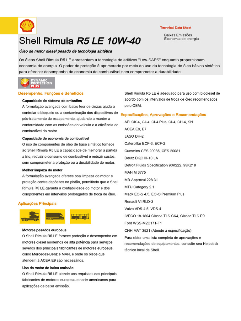 Os óleos Shell Rimula R5 LE apresentam a tecnologia de aditivos "Low-SAPS" enquanto proporcionam