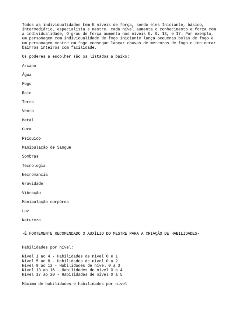 -É FORTEMENTE RECOMENDADO O AUXÍLIO DO MESTRE PARA A CRIAÇÃO DE HABILIDADES-