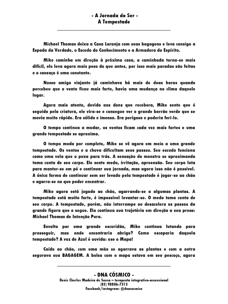 roupas. Adormece e quando acorda a tempestade já havia terminado. Depois de
